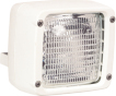 Hvit dekkslyskaster. Leveres for toppmontering med brakett eller for innbygging. Særlig godt egnet i vibrasjonsrike miljøer. Alt materiale er slagfast og UV-bestandig. 12V/55W halogen. Gir jevn belysning av store flater.