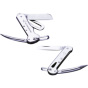 Foldekniv i rustfritt stål med merlespiker og sjakkelåpner. Et klassisk og praktisk riggeverktøy. Hemper for sikringsliner ved klatring i riggen.